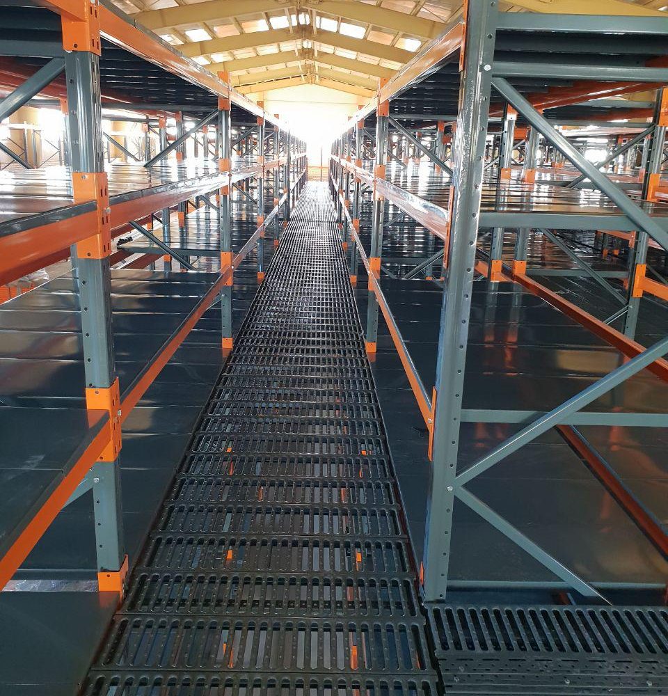 این سیستم در واقع می توان گفت همان سیستم قفسه بندی پانل راک است با این فرق که اولا دارای کفپوش های خاص و با توجه به عرض قفسه می باشد و نیز برای بارهای گسترده با تحمل های ۱۰۰۰ – ۱۵۰۰ و ۲۰۰۰ کیلوگرم در هر طبقه ظرفیت نامی خواهد داشت